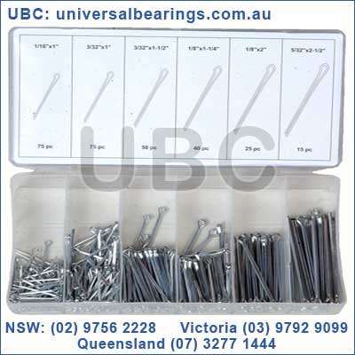 Split pin and cotter pin kit 280 piece. A split pin, also known in the United States as a cotter pin or cotter key, is a metal fastener with two tines that are bent during installation, similar to a staple or rivet. Typically made of thick wire with a half-circular cross section, split pins come in multiple sizes and types.