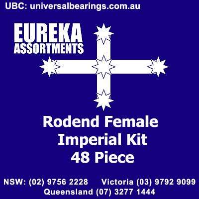 Rod End Female Imperial Kit 48 Piece. A rod end bearing, also known as a heim joint (N. America) or rose joint (U.K. and elsewhere), is a mechanical articulating joint. Such joints are used on the ends of control rods, steering links, tie rods, or anywhere a precision articulating joint is required. A ball swivel with an opening through which a bolt or other attaching hardware may pass is pressed into a circular casing with a threaded shaft attached. The threaded portion may be either male or female.