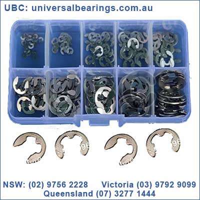 E-type Circlips are made from spring tensioned Stainless Steel . E-type Circlips are made to fit onto shafts that may or may not be precision manufactured, or you require a less expensive type of retainer. Th E type circlip does not require a special pair of pliers to fit it. Used mainly for locating or retaining components from sideways movement. Circlip E Type Metric Stainless Steel Kit 300 Piece. The Eureka Assortments container is made of heavy durable plastic, each holding individual slots separating each product size independently.