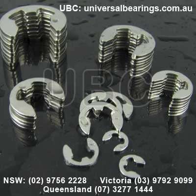 E-Clips, made of Stainless steel finish, retain positive retention of pulleys, sprockets, springs, & bearings on shafts, & rods.